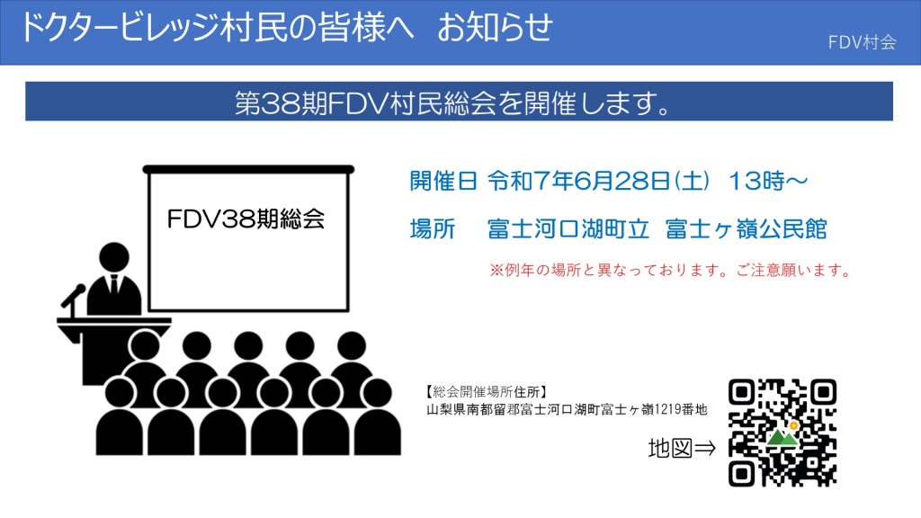 毎年 年一回の「FDV通常総会」につきましては毎年 5月GW~中旬頃の開催を実施しておりますが、